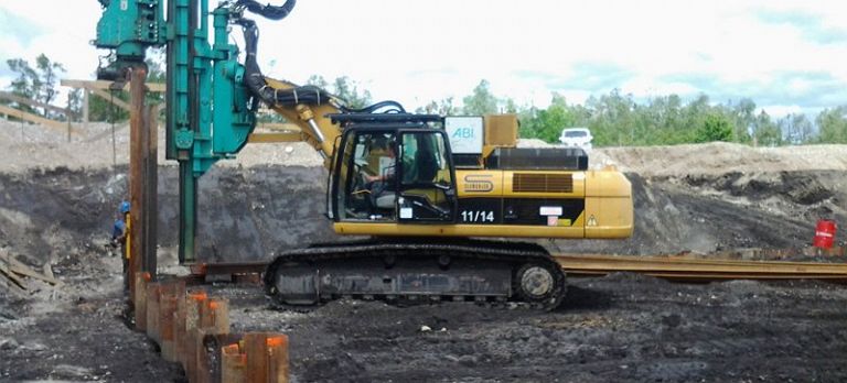 Varovanje brežin z jeklenimi zagatnicami za gradnjo novega podvoza – Ptuj Jeklene zagatne stene, zagatnice in AB piloti in sidranje