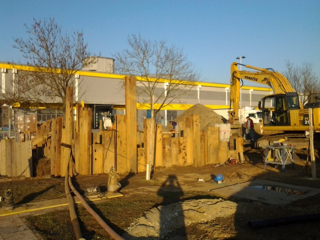 Za Legartis, gradbeno podjetje d.o.o. smo v Lendavi izvajali varovanje gradbene jame z jeklenimi zagatnicami dolžine 12 m.
