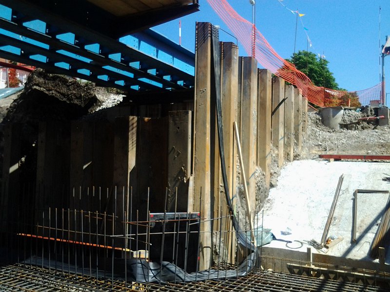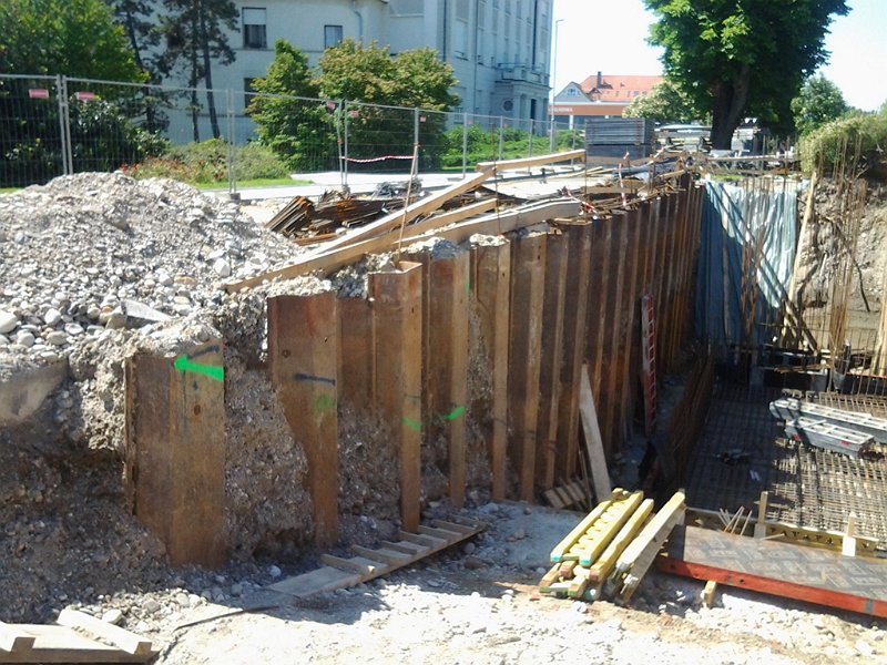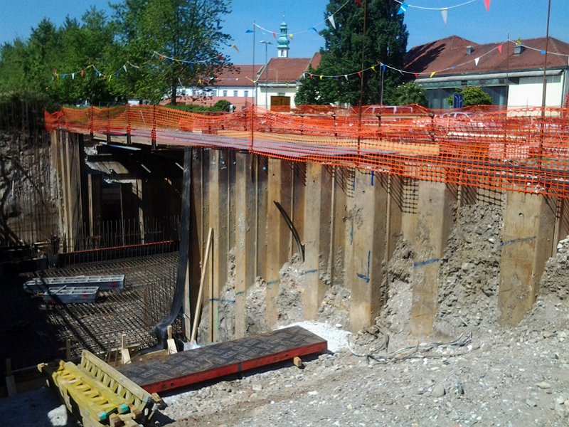 Ob koncu meseca maja 2015 smo z zabijanjem jeklenih zagatnic tipa Larssen 604n po naročilu gradbenega podjetja Strabag izvedli varovanje gradbene jame za izvedbo novega podvoza na Ptuju.
